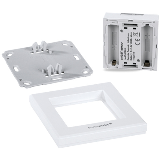 Ovladač je možné integrovat do Stojánku bateriových komponent 55 mm (HmIP-DS55) nebo provozovat i bez baterií v kombinaci s Napájecím zdrojem bateriových komponent 55 mm (HmIP-BPS-2).