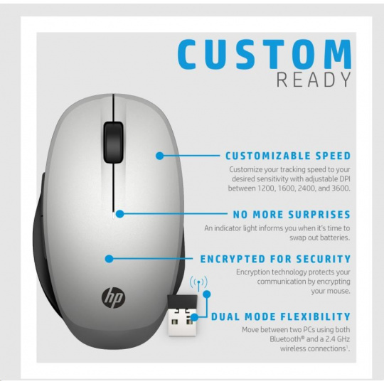 HP Dual Mode Silver Mouse 300 - bluetooth myš, připojení ke dvou PC zároveň