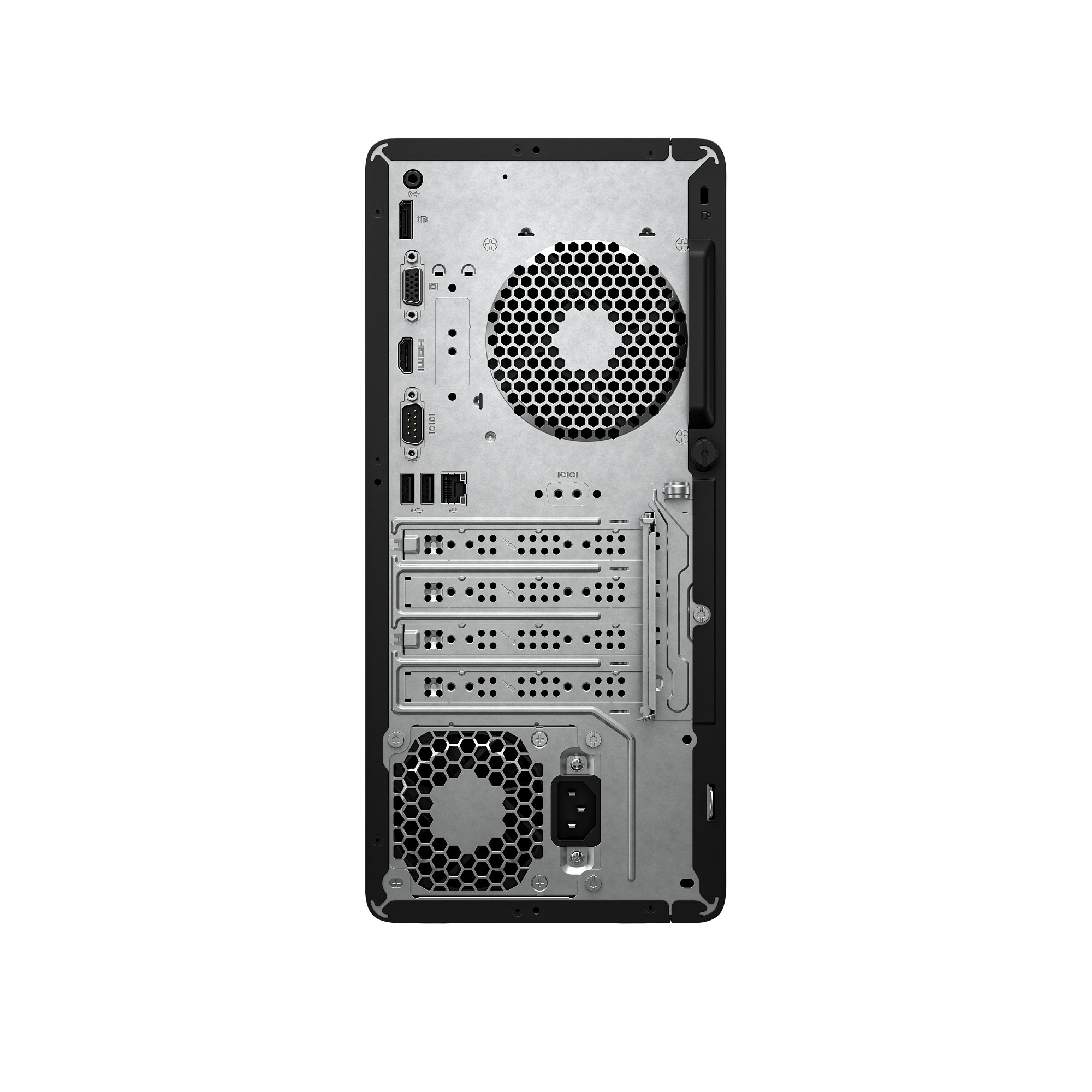 | Porty | Vpředu 4x USB Type-A s přenosovou rychlostí 5 Gb/s; 1x konektor pro sluchátka/mikrofon Zadní 4x USB 2.0 Type-A; 1x HDMI; 1x RJ-45; 1x VGA; 1x napájecí konektor; 1x linkový vstup; 1x linkový výstup; 1x sériový port (volitelně) [11] |