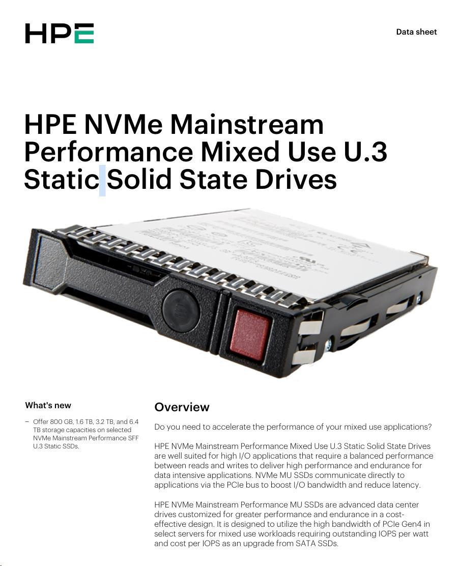 HPE 3.2TB NVMe Gen4 Mainstream Performance Mixed Use SFF BC U.3 Static V2 Multi Vendor SSD P65015-B21 RENEW.