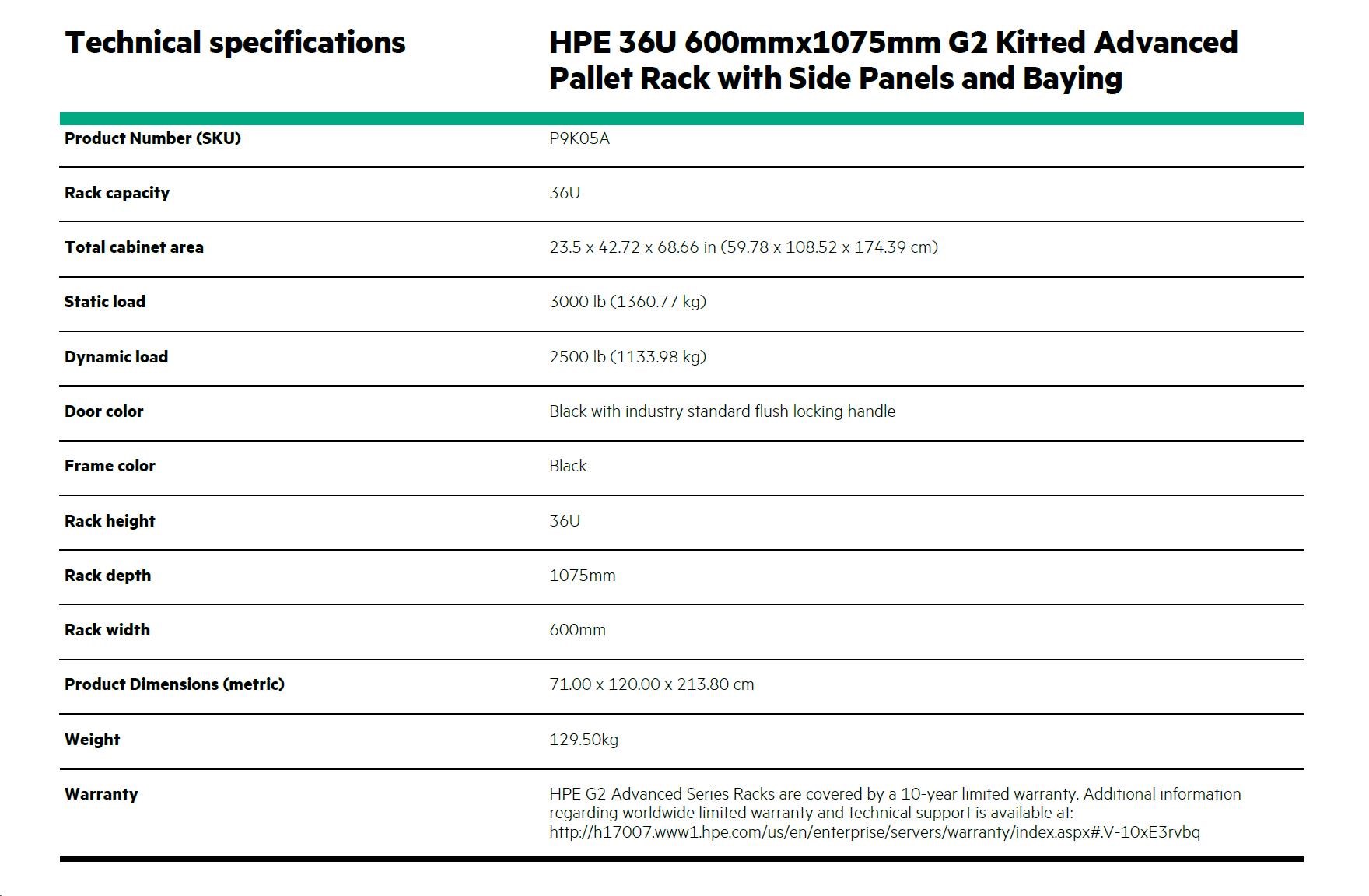 HPE 36U 600mmx1075mm G2 Kitted Advanced Pallet Rack with Side Panels and Baying.... více