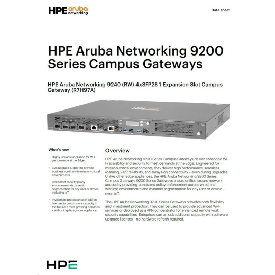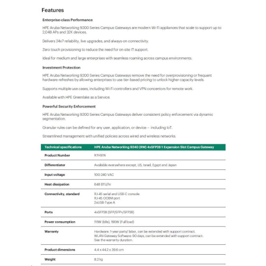 HPE Aruba Networking 9240 (RW) 4xSFP28 1 Expansion Slot Campus Gateway.