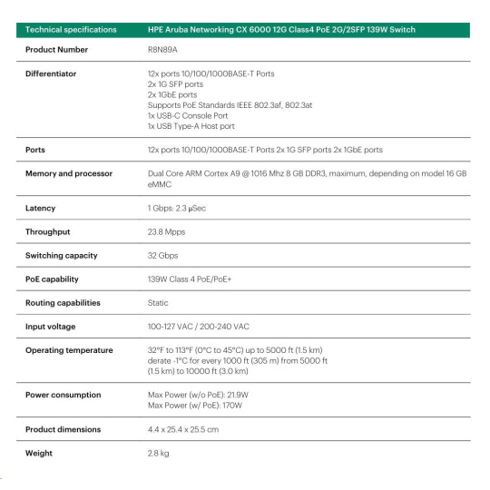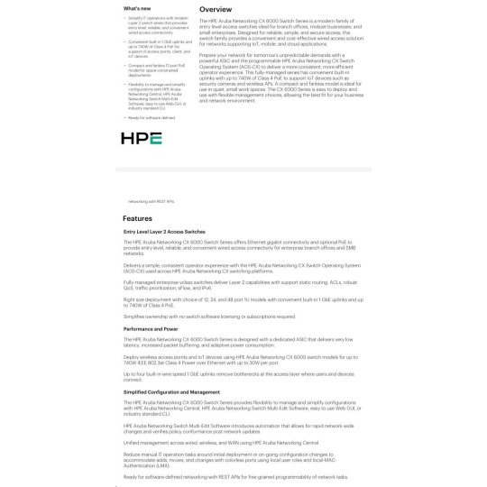HPE Aruba Networking CX 6000 12G Class4 PoE
