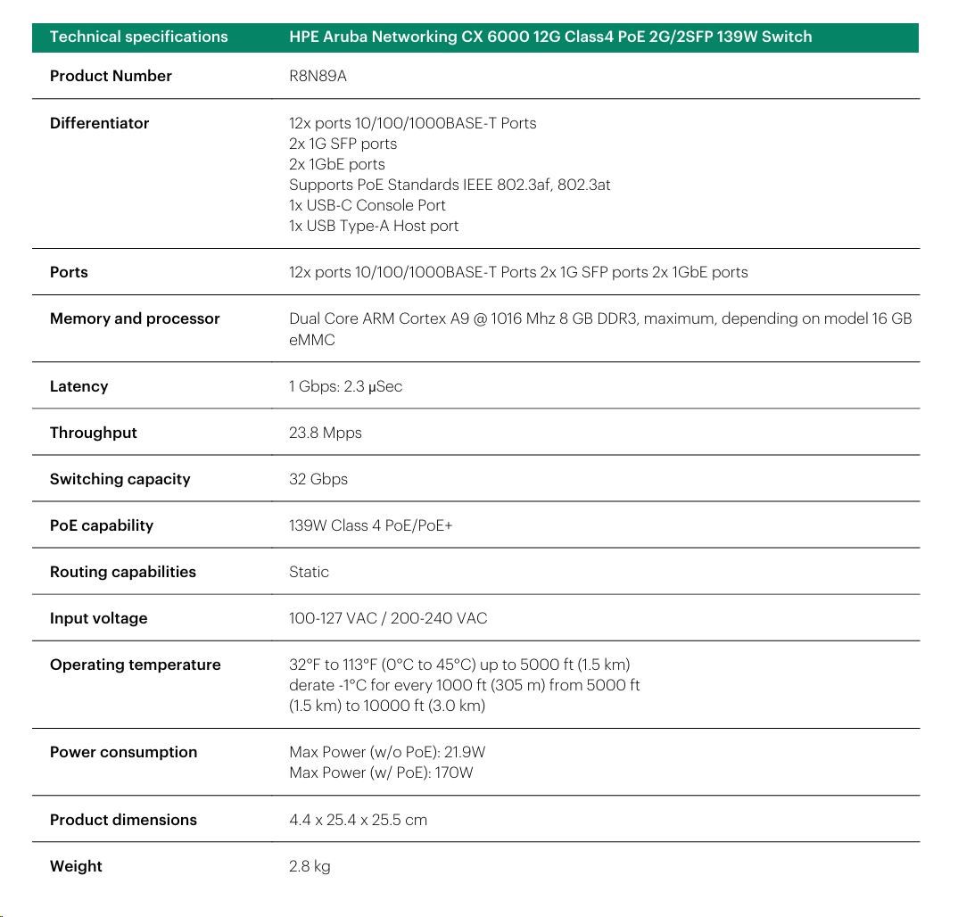 HPE Aruba Networking CX 6000 12G Class4 PoE
