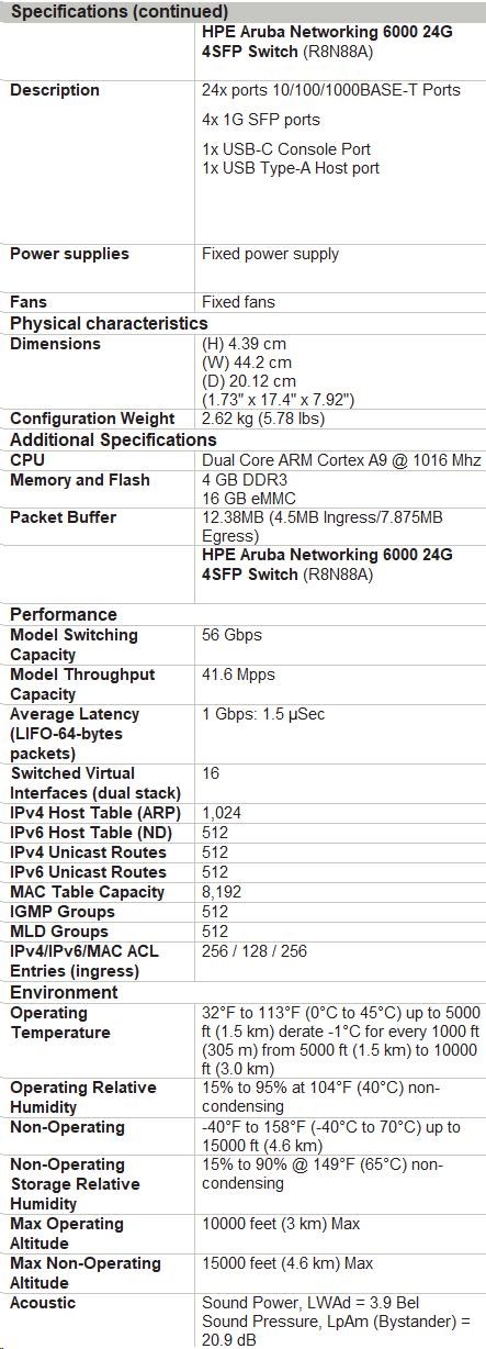 Specification 6000 24G 4SFP Switch (R8N88A)