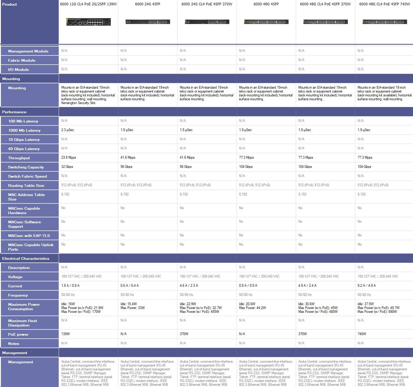 Aruba 6000 48G Class4 PoE 4SFP 370W Switch (R8N85A)