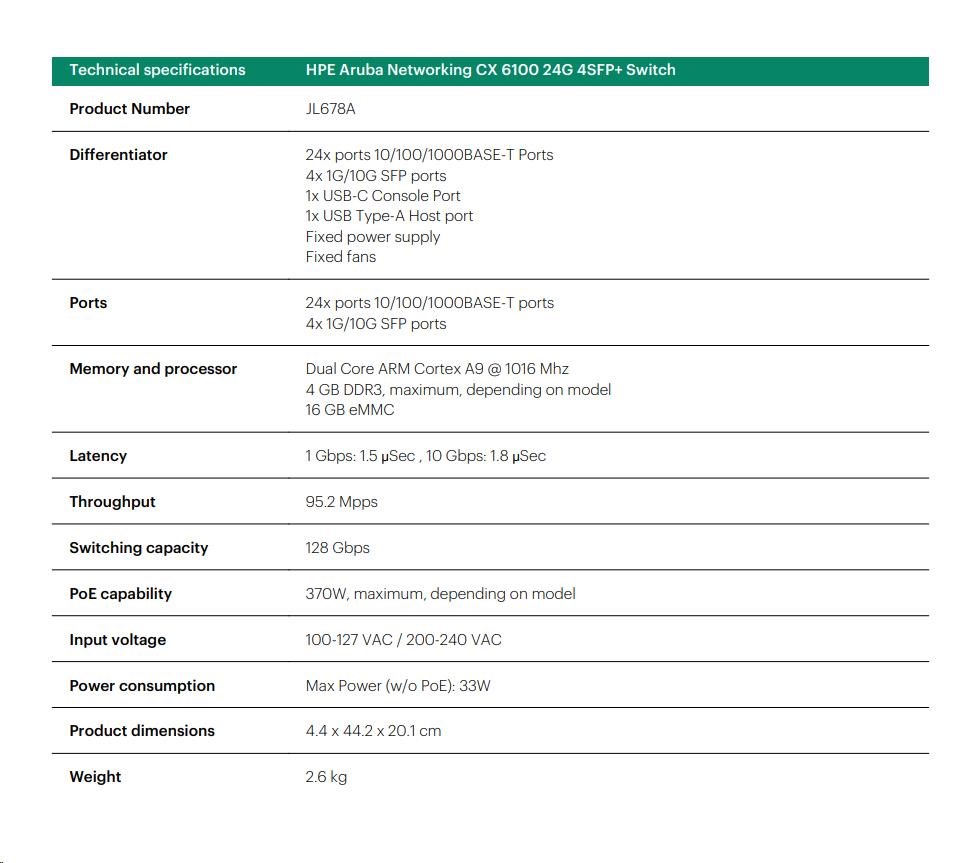 HPE Aruba Networking CX 6100 24G 4SFP+ Switch