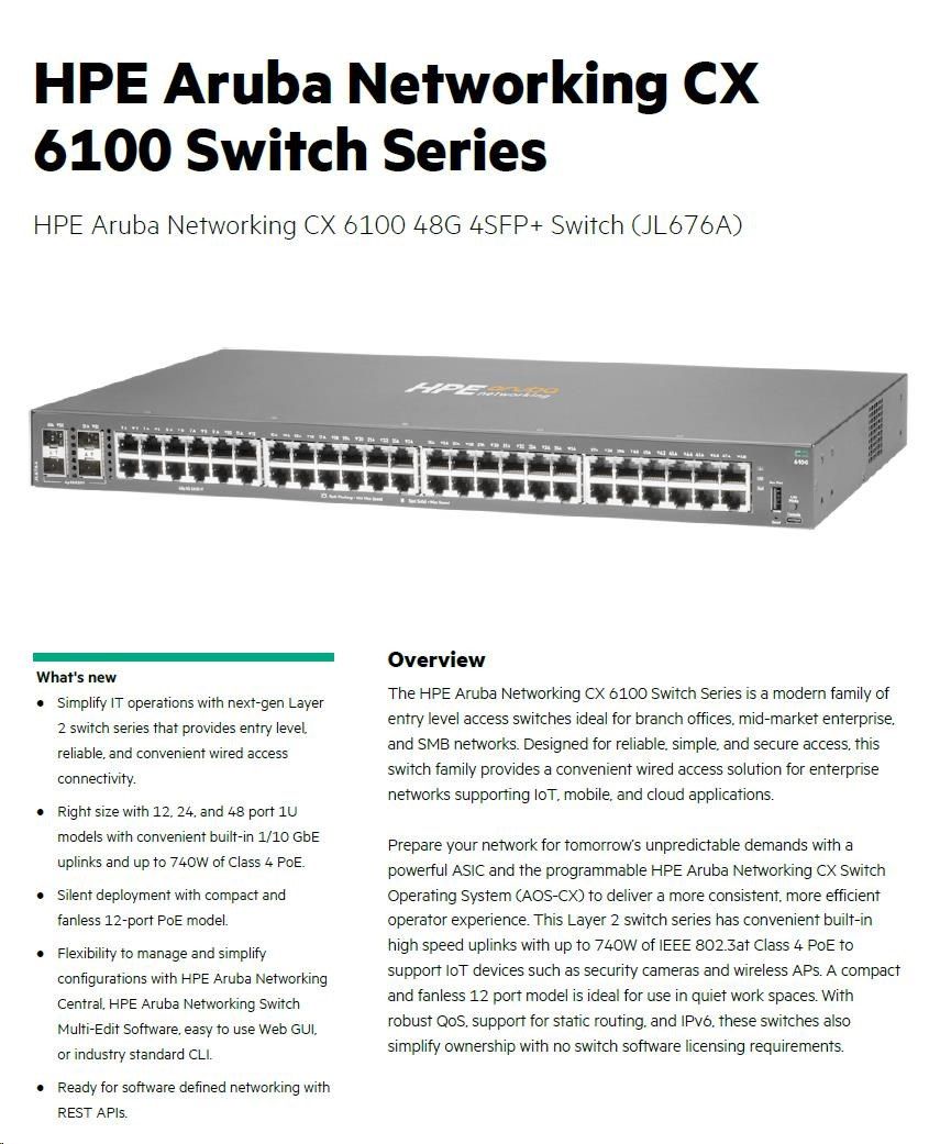 HPE Aruba Networking CX 6100 48G 4SFP+ Switch.