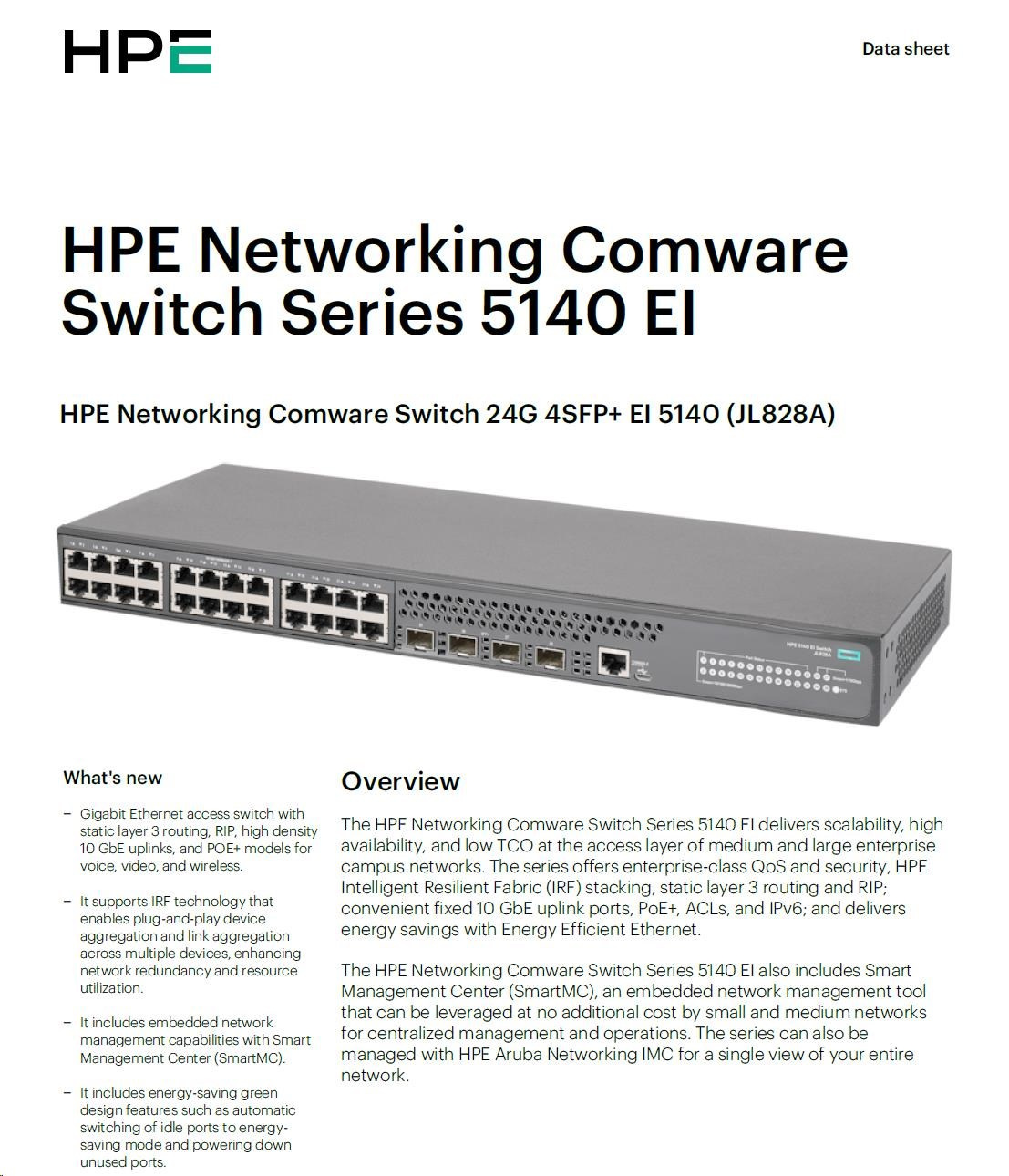 HPE Networking Comware 5140 24G 4SFP+ EI Switch JL828AR RENEW