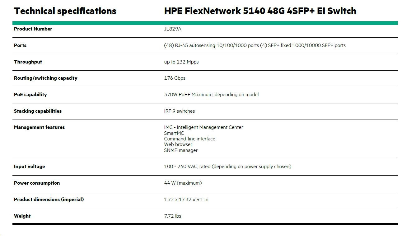 HPE FlexNetwork 5140 48G 4SFP+ EI Switch (JL829A)