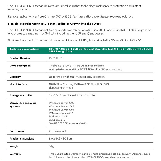 HPE MSA 1060 SFF 2x12Gb SAS 2p Array.