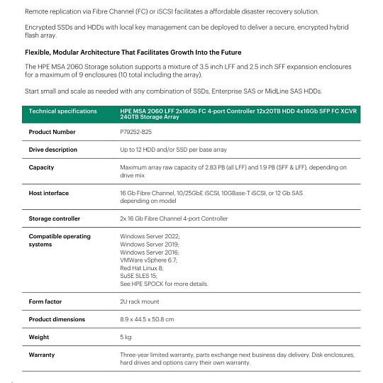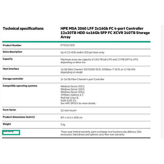 HPE MSA 2060 LFF 2x10/25GbE iSCSI Array.