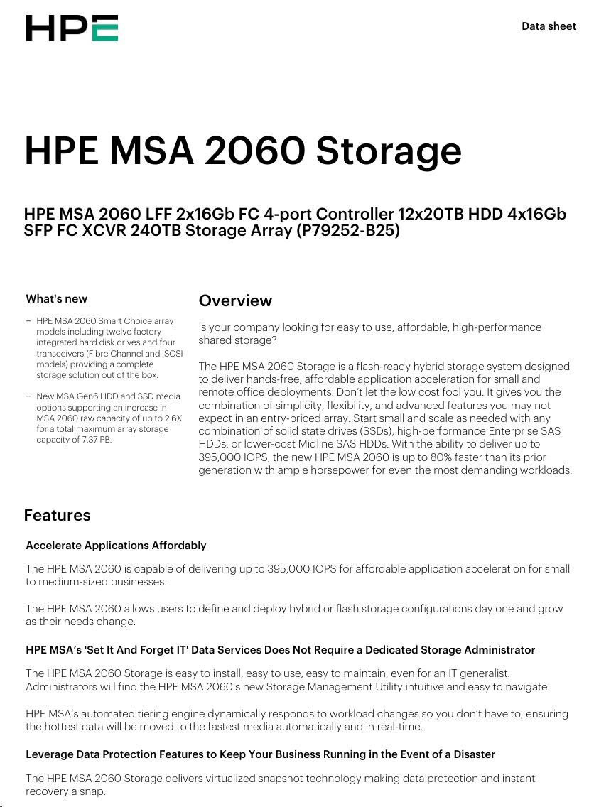 HPE MSA 2060 LFF 2x10/25GbE iSCSI Array.
