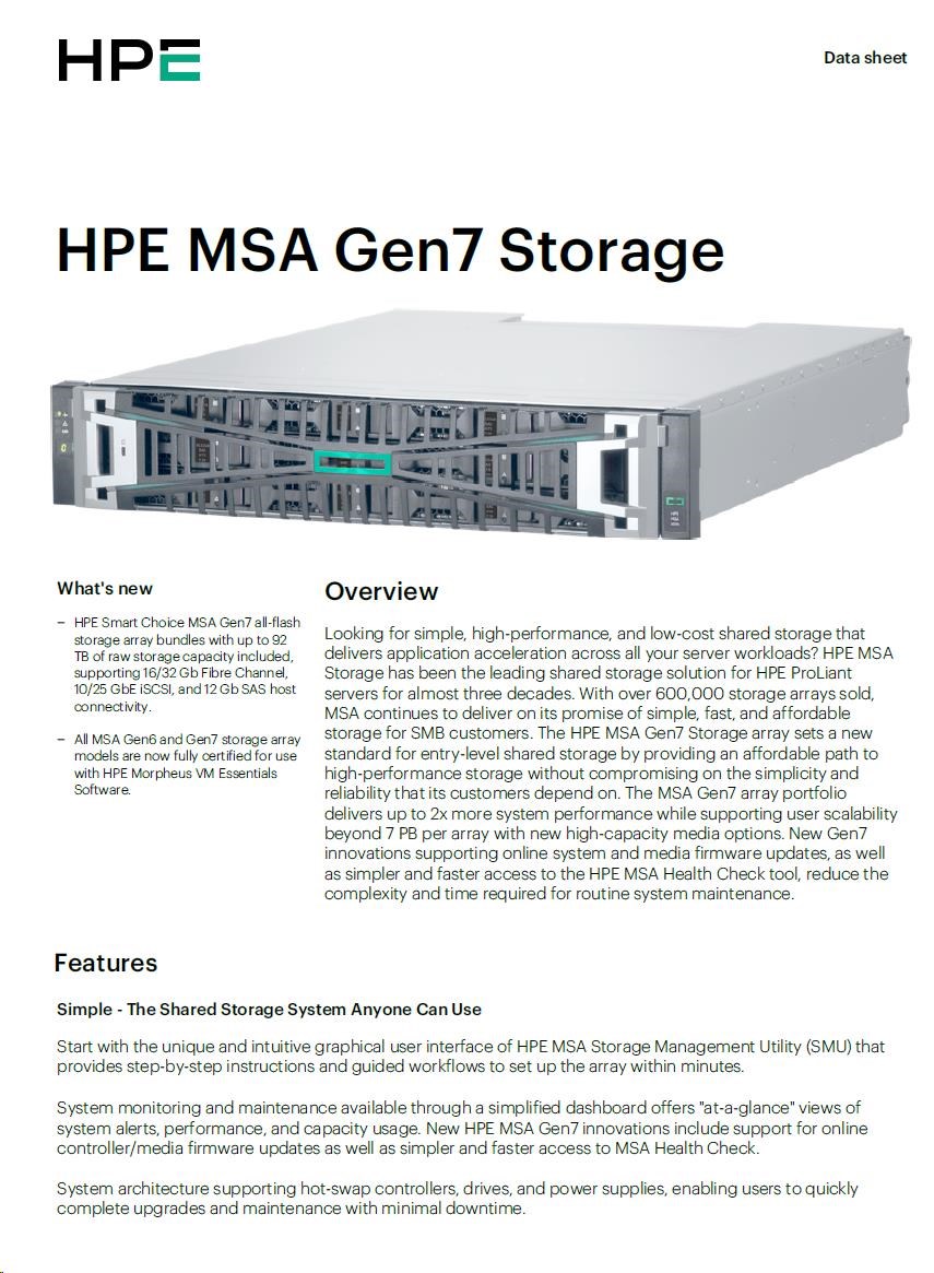 HPE MSA 2070 10/25GbE iSCSI SFF Storage.