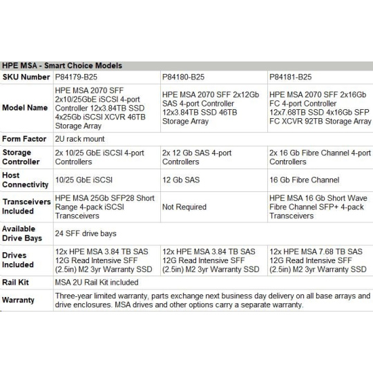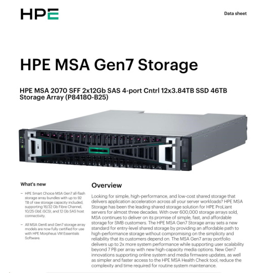 HPE MSA 2070 SFF 2x12Gb SAS 4-port Controller 12x3.84TB SSD 46TB Storage Array Smart Choice.