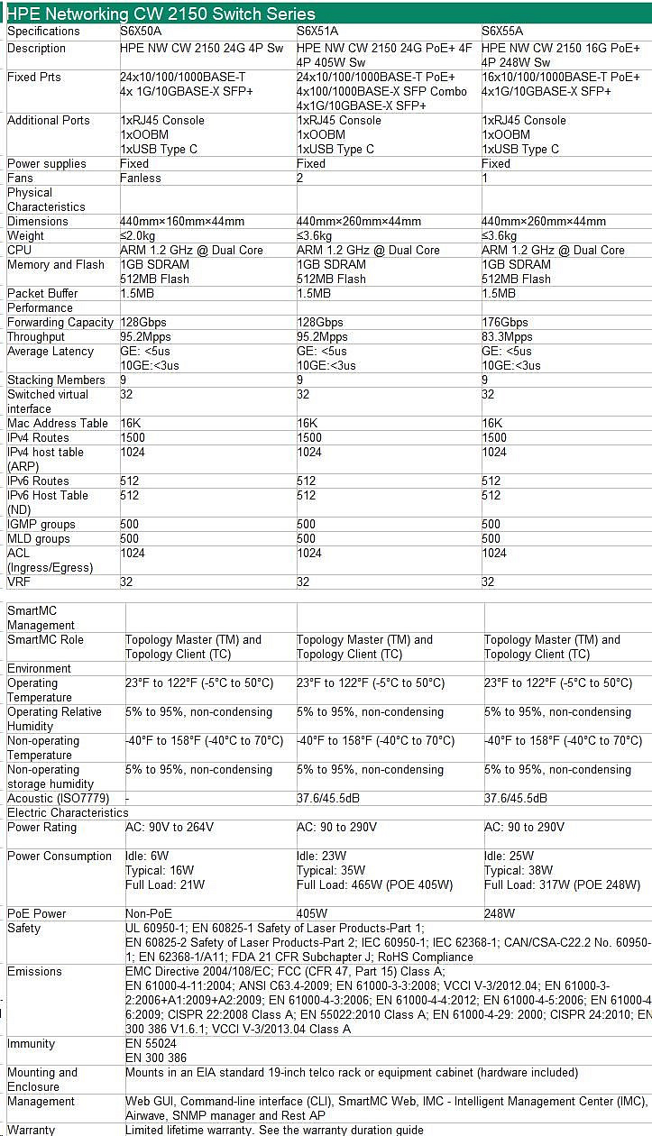 HPE Networking CW 2150 24p 10M/100M/1G 4p SFP+ 1G/10G Switch.