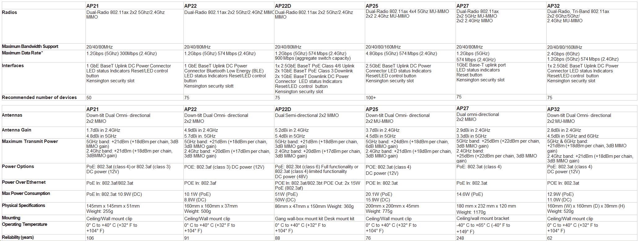 • OFDMA: Supports multiple Wi-Fi 6 clients on each channel simultaneously for better capacity and lower latency.