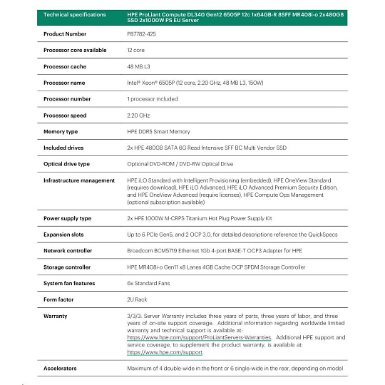 HPE PL DL340g12 6505P (2.2/12C) 4x32G (P69727) MR408i-o 8SFF 2x1000W NBD333 Smart Choice.