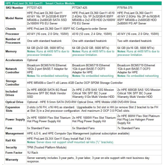 HPE PL DL360g11 4514Y (2.0G/16C) 2x32G (p64706) 2x480G 2x1000W MR408i-o 8SFF 2x10G-T Smart Choice.