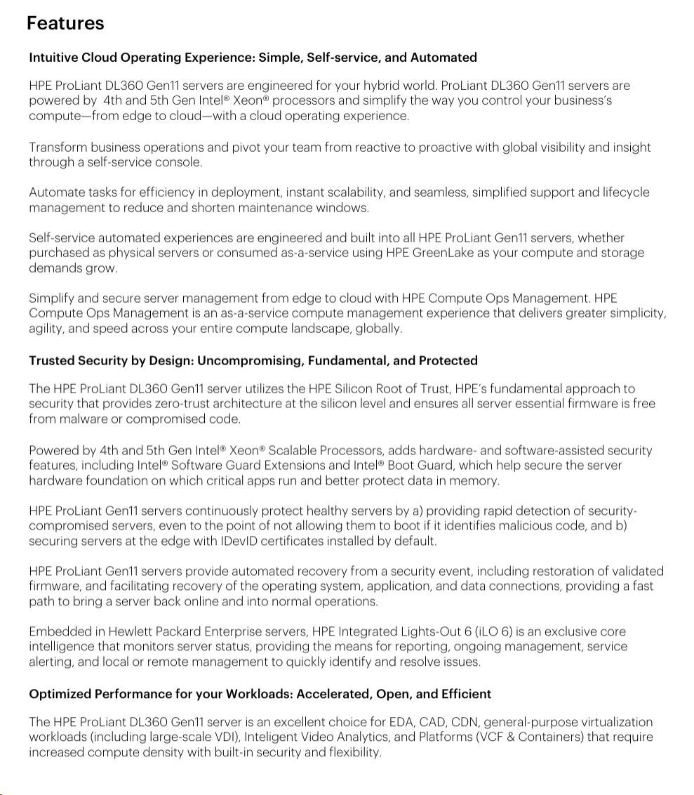 Model Name HPE ProLiant DL360 Gen11 5415+ 2.9GHz 8-core 1P 32GB-R NC 8SFF 800W PS Server