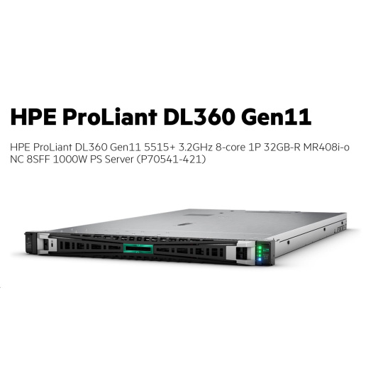 HPE PL DL360g11 5515+ (3.2/8C) 1x32G (p64706) MR408i-o/4G 8SFF 1x1000W 2p10T 1U P70541-421 RENEW
