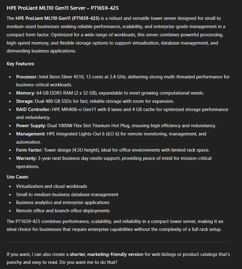 HPE ProLiant ML110 Gen11 SFF Configure-to-order Server