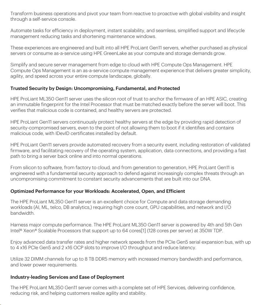 HPE PL ML350g11 4510 (2.4G/12C) 1x32G (P64706) 2x4TB/7.2k SATA LFF VROC 2x1000W 4p1G Smart Choice.