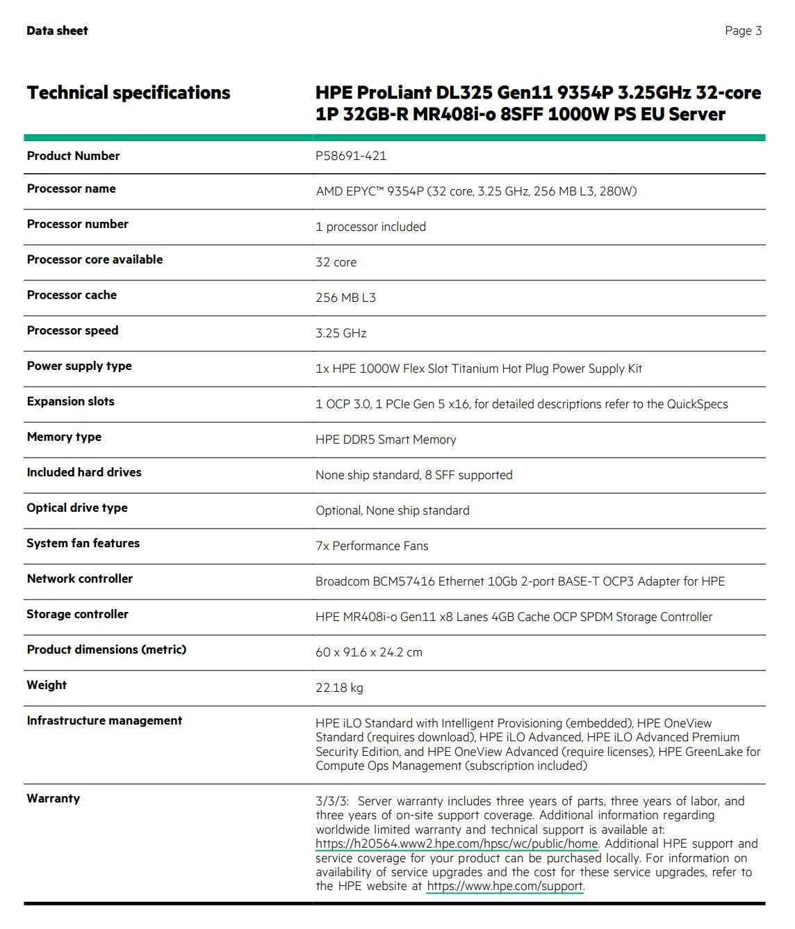 HPE PL RL300 Gen11 M128-30 1P 128G 8SFF Svr.
