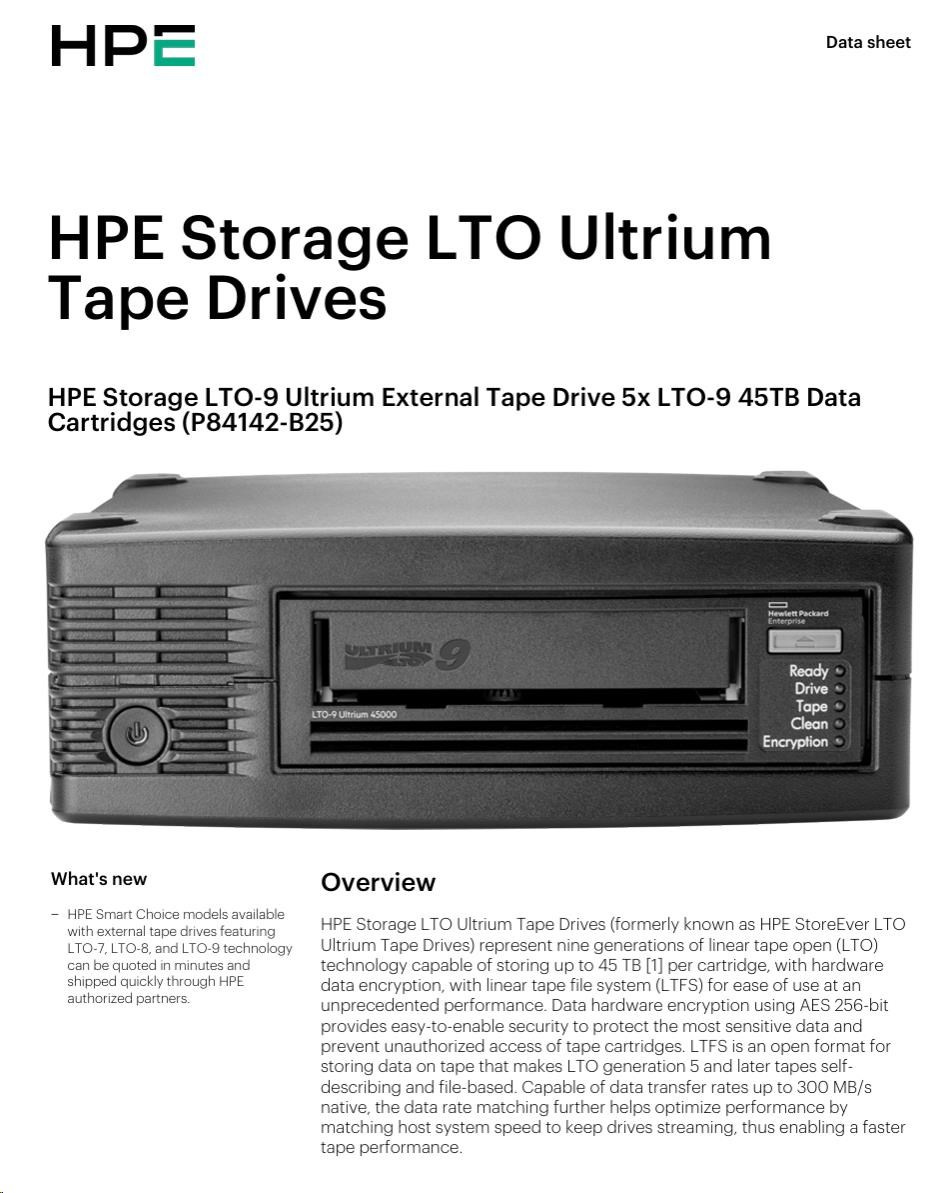 HPE Storage LTO-8 Ultrium External Tape Drive 5x LTO-8 30TB Data Cartridges.