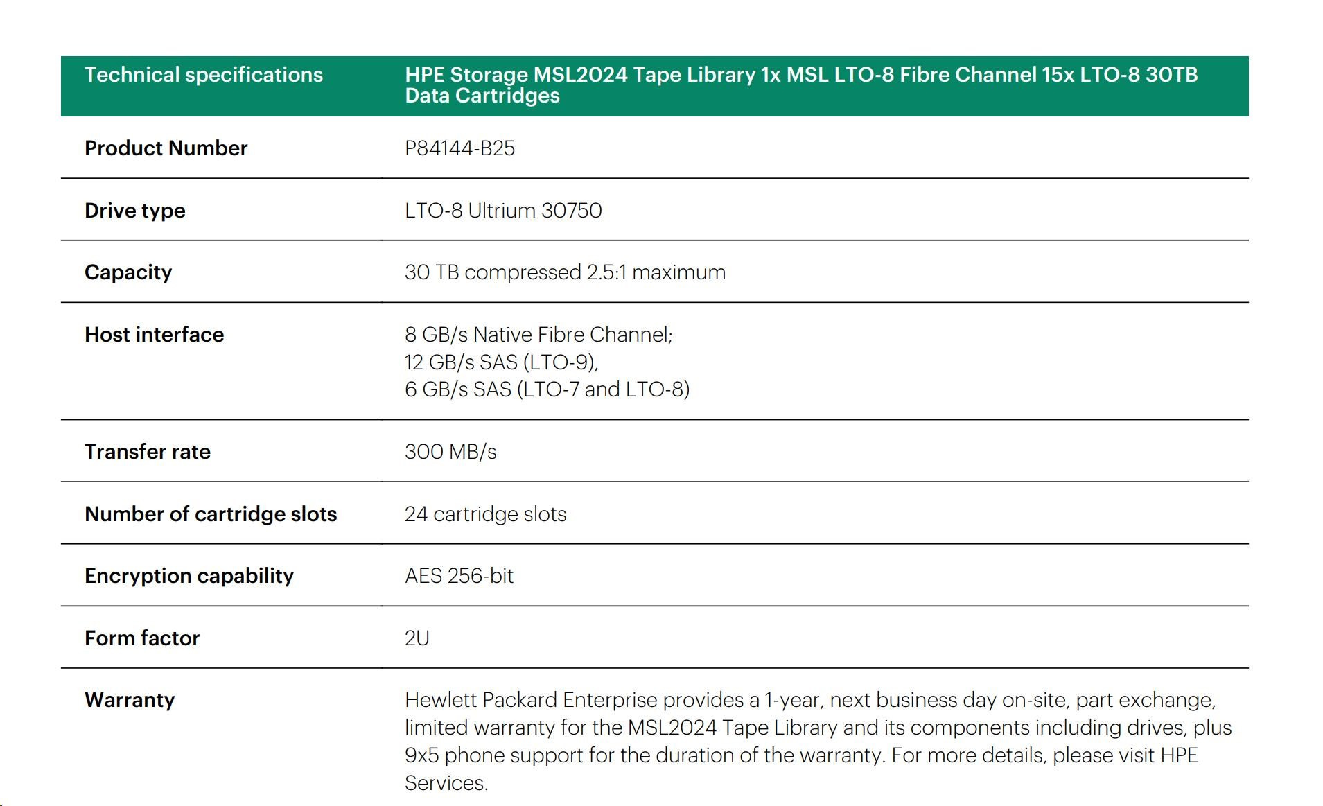 | - HPE Smart Choice MSL2024 library models with LTO- technology available that can be quoted in minutes and shipped quickly through HPE Authorized Partners.