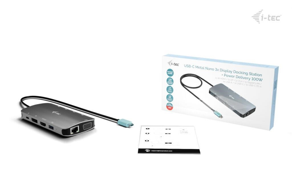 i-tec USB-C Metal Nano 3x Display (DP, HDMI and VGA) Docking Station + Power Delivery 100 W