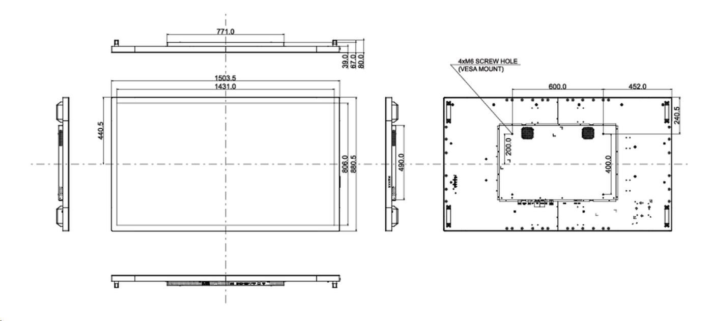 touch monitor (open-frame, 16:9), 165 cm (65''), Touchscreen, Projected Capacitive, resolution: 3840x2160 pixels, VESA mount, 8ms, brightness: 500cd, viewing angle: 178/178°(H/V), contrast: 1100:1, audio, VGA, display-port, HDMI, touch interface: USB, IP54, incl.: cable (USB, HDMI, Display Port), power supply unit, power cable, QSG, colour: black.