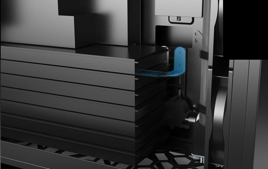 - Dovnitř skříně lze naistalovat souběžně vrchní a zadní vodní chlazení, a 3 větráky.
