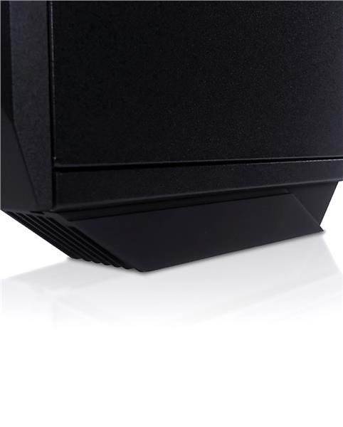 Skříň Grone pro herní počítače disponuje nejen velkým vnitřním prostorem pro rozšíření, do kterého lze nahlédnout přes boční průhledný rám, ale také celkovým nebojácným originálním vzhledem. Součástí skříně jsou také čtyři předinstalované větráky, přičemž za zmínku stojí zejména 2 přední, které jsou vybaveny LED osvětlením.