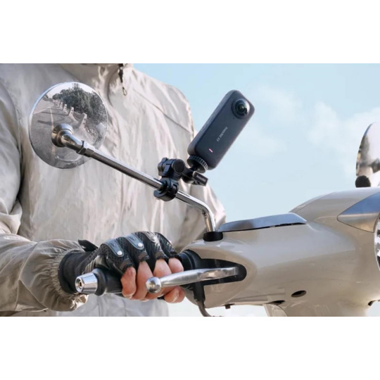 Držák na zrcátka motocyklu či scooteru, díky kterému pořídíte záběry "ze třetí osoby". Lze připevnit na řídítka o velikosti 6 - 15 mm..