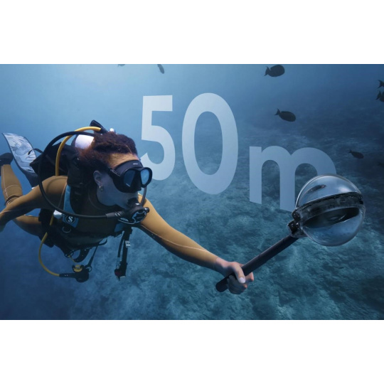 Prémiové podvodní pouzdro je navrženo speciálně pro kameru Insta360 X5, aby umožnilo natáčet plynulé a ničím nerušené 360° video až do hloubky 50 metrů. Díky precizní optické konstrukci se pouzdro zcela ztratí ve výsledném záběru – bez švů, bez odlesků, bez kompromisů.