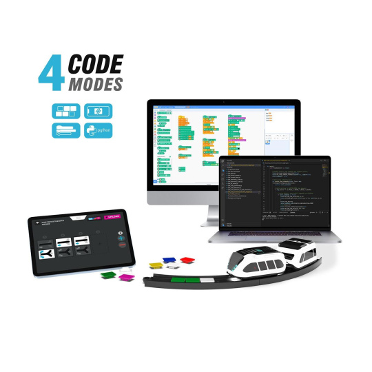Intelino - Smart Train třídní sada Děti si s vláčky hrají po generace. Jak se může klasický dětský elektrický vláček s vagónky ještě změnit? K nepoznání! Intelino je lokomotiva s vagońky, jak je znáte, ale znovu od základu vynalezené a k nepoznání vylepšené. Vláček Intelino je intuitivní a jednoduchý na ovládání a k ... více