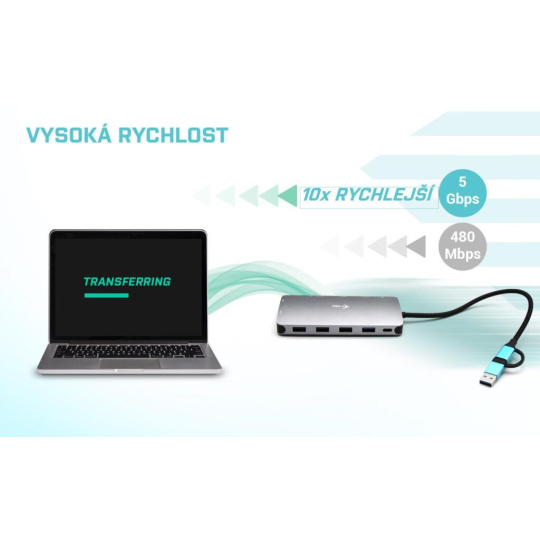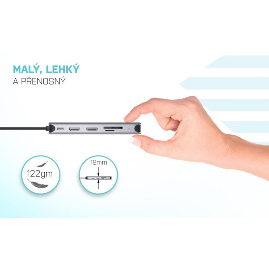 Výkonná, přesto však malá a přenosná dokovací stanice, která podporuje výstup až na tři externí monitory. Dok lze použít prakticky s jakýmkoliv notebookem, neboť podporuje připojení ke všem obvyklým portům: USB 3.0, USB-C, USB4 a Thunderbolt“ 3/4, a zároveň podporuje všechny běžné současné operační systémy. Připojení ke třem monitorům však bude možné pouze v případě notebooku s portem Thunderbolt“ 3/4, případně USB-C portem podporujícím přenos videa (tzv. USB-C DP Alt mode).