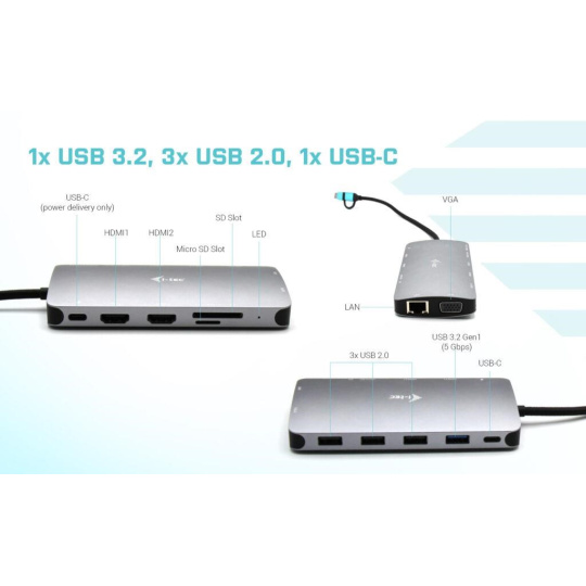 i-tec USB 3.0 USB-C/Thunderbolt 3x Display Metal Nano Dock with LAN, PD 100 W