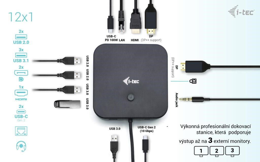 i-tec USB-C HDMI + Dual DP Docking Station + PD 100 W + Universal Charger 112 W