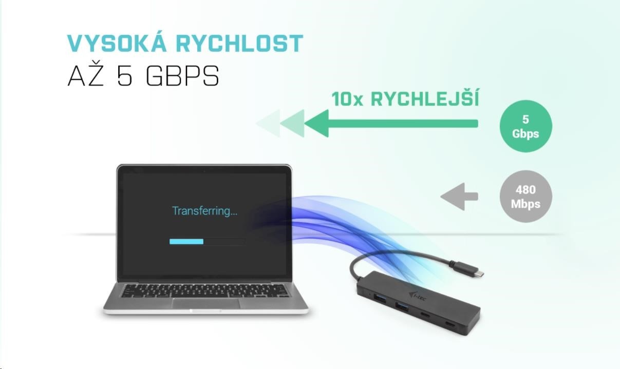 S tímto hubem získáte další 4 další USB: dva standardní USB 3.0, a dva USB-C porty. Připojte si externí klávesnici a myš, přenášejte data nebo filmy z USB flash disku rychlostí až 5 Gbps nebo nabíjejte svá mobilní zařízení nabíjejte (standardní USB rychlostí 0.9A).