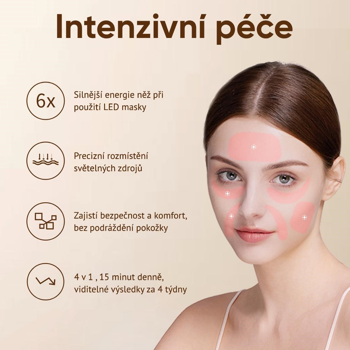 • Efektivní domácí terapie – až 6x účinnější než běžné LED masky. Patentovaná cílená fototermální technologie koncentruje světelnou energii do přesného bodu a působí přímo v hlubokých vrstvách pokožky.