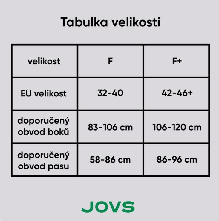 • Velikosti: F (pro obvod boků 66-85 cm), F+ (pro obvod boků 80-90 cm)