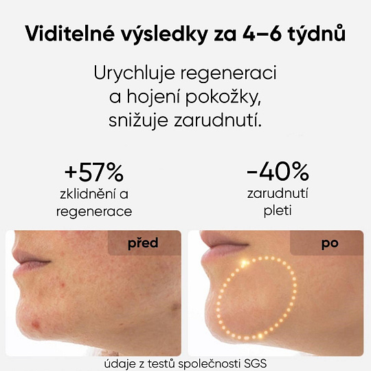 - Viditelné výsledky za 4-6 týdnů: Pravidelné používání prokazatelně redukuje akné, vrásky, pigmentaci a zlepšuje elasticitu pleti.