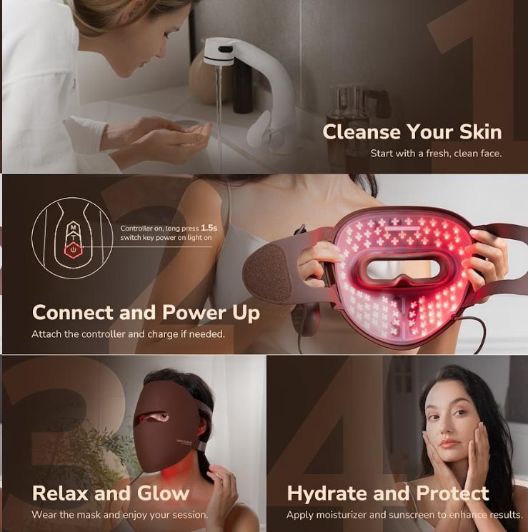 • Čtyři klinicky ověřené vlnové délky pro komplexní péči o pleť: modrá, jantarová, červená a blízká infračervená.