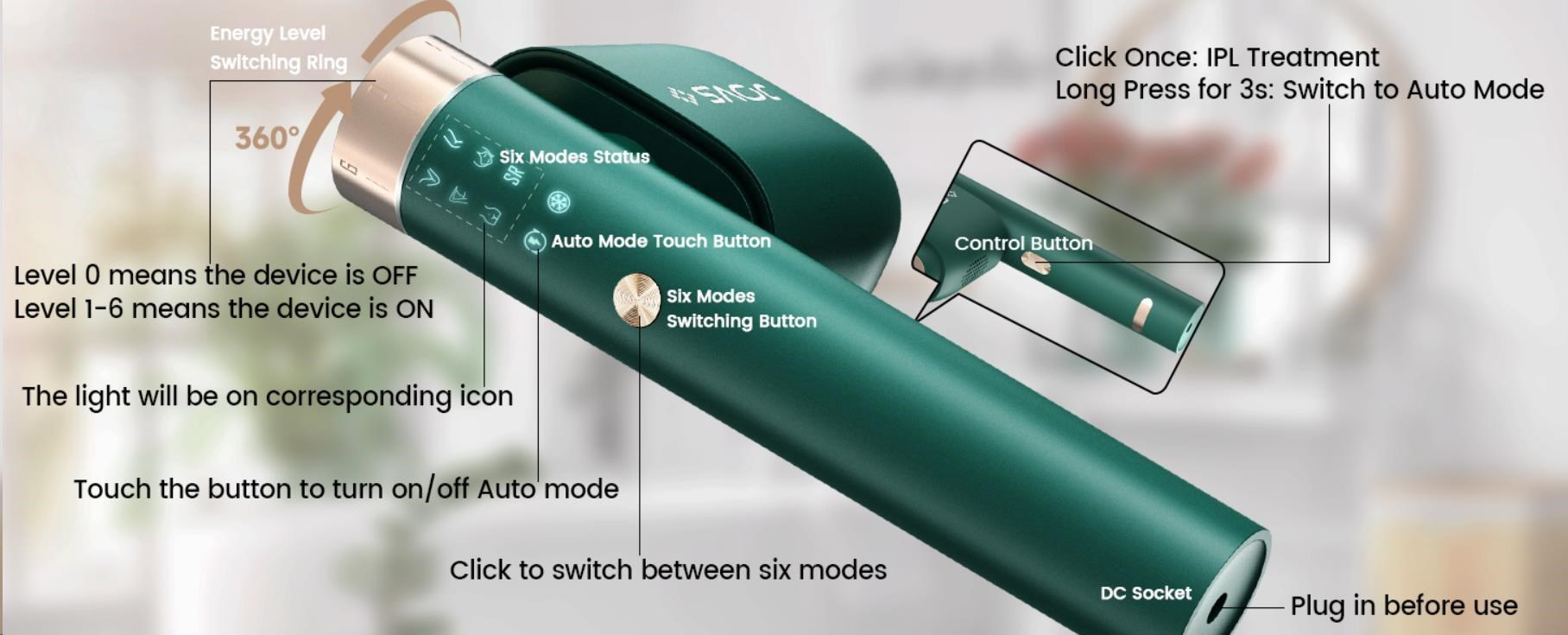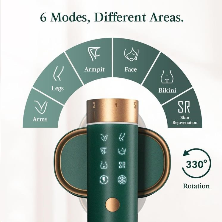 - Přesné cílení na každou partii: 6 specializovaných režimů pro obličej, ruce, nohy, podpaží a oblast bikin s 6 úrovněmi intenzity.