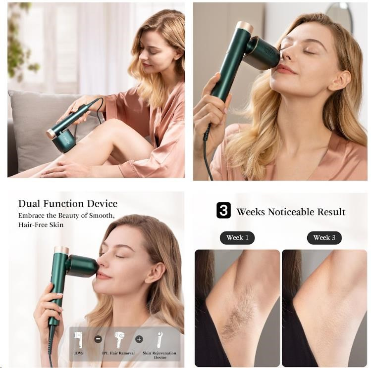 - Hybridní péče 2v1: Kombinuje efektivní odstraňování chloupků (OPT) a omlazení pleti (SR režim) v jednom přístroji.