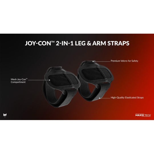 2x 2v1 popruhy na ruce a nohy – lze je nastavit pro všechny věkové kategorie, aby vám ovladač Joy-Con™ pevně seděl