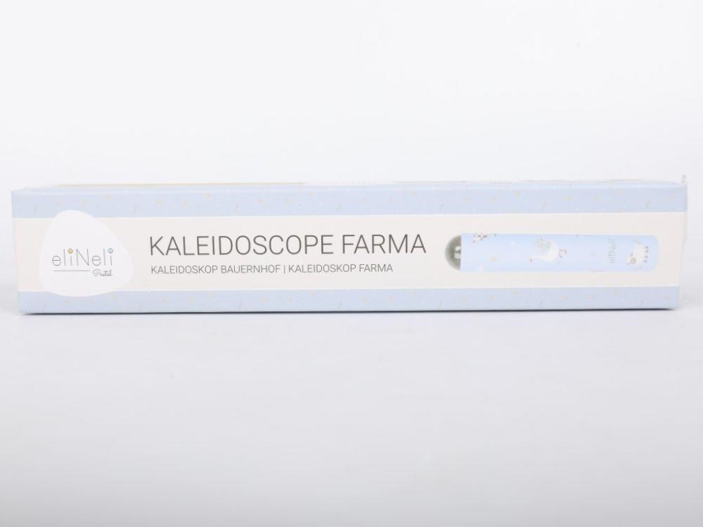Kaleidoskop v neutrální pastelové barvě, s motivem zvířátek z farmy, v jejich skutečné, reálné podobě, je krásným dárkem pro zvídavé děti. Stačí krasohledem lehce otáčet a uspořádání sklíček a tedy i obrazce se budou měnit a přetvářet. Krasohled, optický přístroj, který pomocí sklíček a zrcadel vytváří kouzelné obrázky, rozvíjí u dětí fantazii a kreativitu..