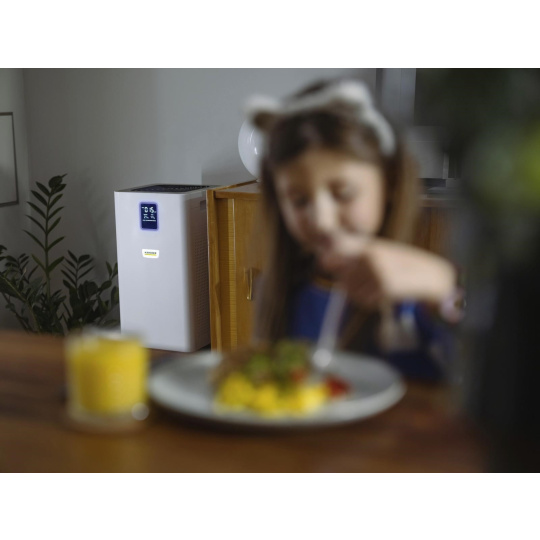 Ideální čištění vzduchu pro větší místnosti, obývací pokoje a pracoviště: Čistička vzduchu AF 50 zbavuje vzduch v místnosti alergenů, znečišťujících látek a choroboplodných zárodků pomocí vícevrstvého filtračního systému. K dalším funkcím patří náplň s aktivním uhlím, displej pro alfanumerické zobrazení kvality vzduchu v částicích PM2,5 v µg/m3 a pro zobrazení kvality vzduchu v podobě barevného kódu, teploty a relativní vlhkosti. Čistička vzduchu je vynikající volbou také díky funkci časovače, dětské pojistce, nočnímu režimu a velmi tichému provozu, jakož i účinnosti filtru 99,95 % pro částice o velikosti 0,3 µm a kvalitnímu laserovému senzoru pro automatický režim. To znamená, že automatický režim a úroveň výkonu se automaticky přizpůsobí úrovni znečištění ovzduší. Filtr má navíc životnost přibližně jeden rok v závislosti na úrovni znečištění ovzduší a intenzitě používání.